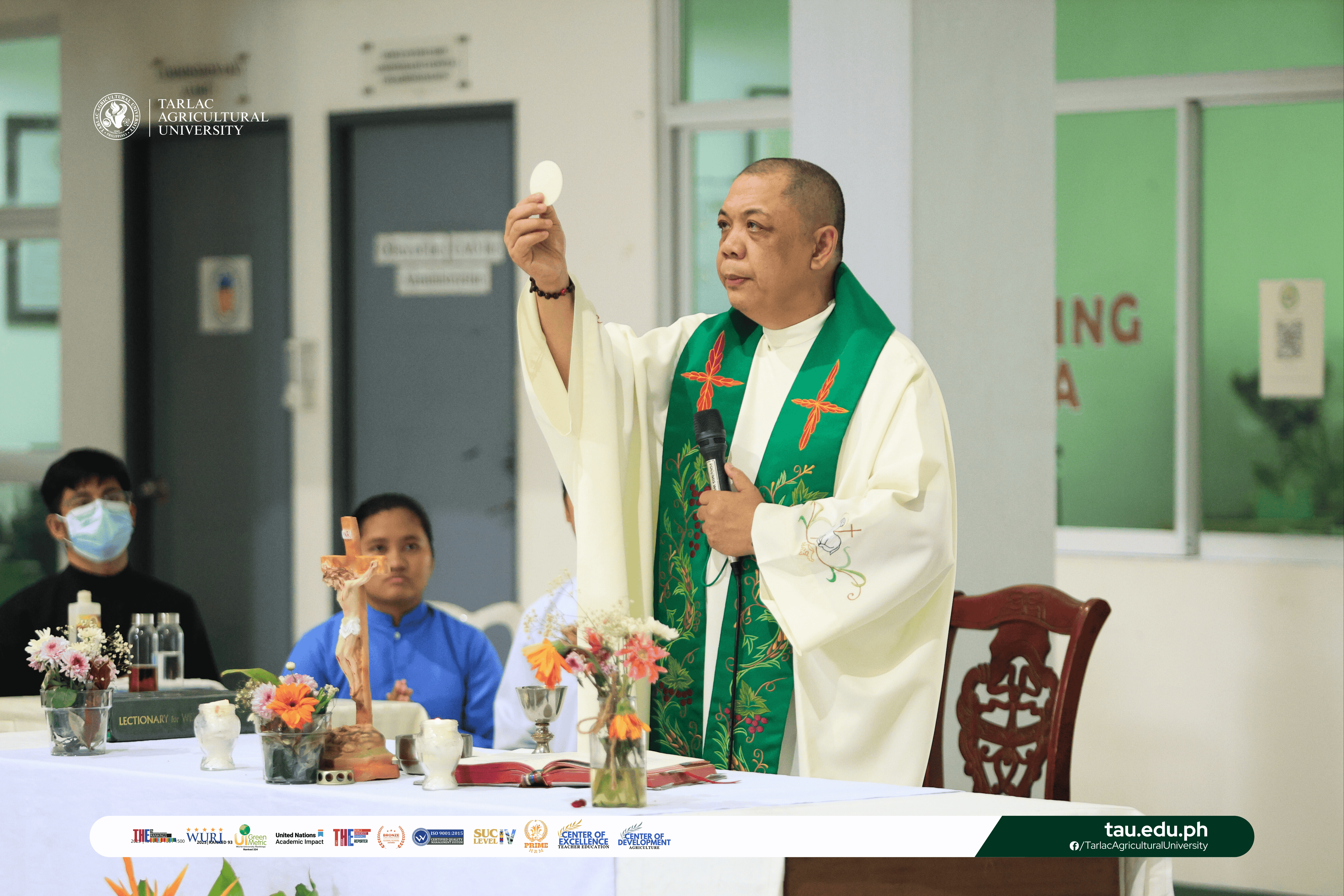 A moment of reflection and thanksgiving fills the air at the Tarlac Agricultural University (TAU) Administration Building Atrium during the mass last Friday, 5 September.