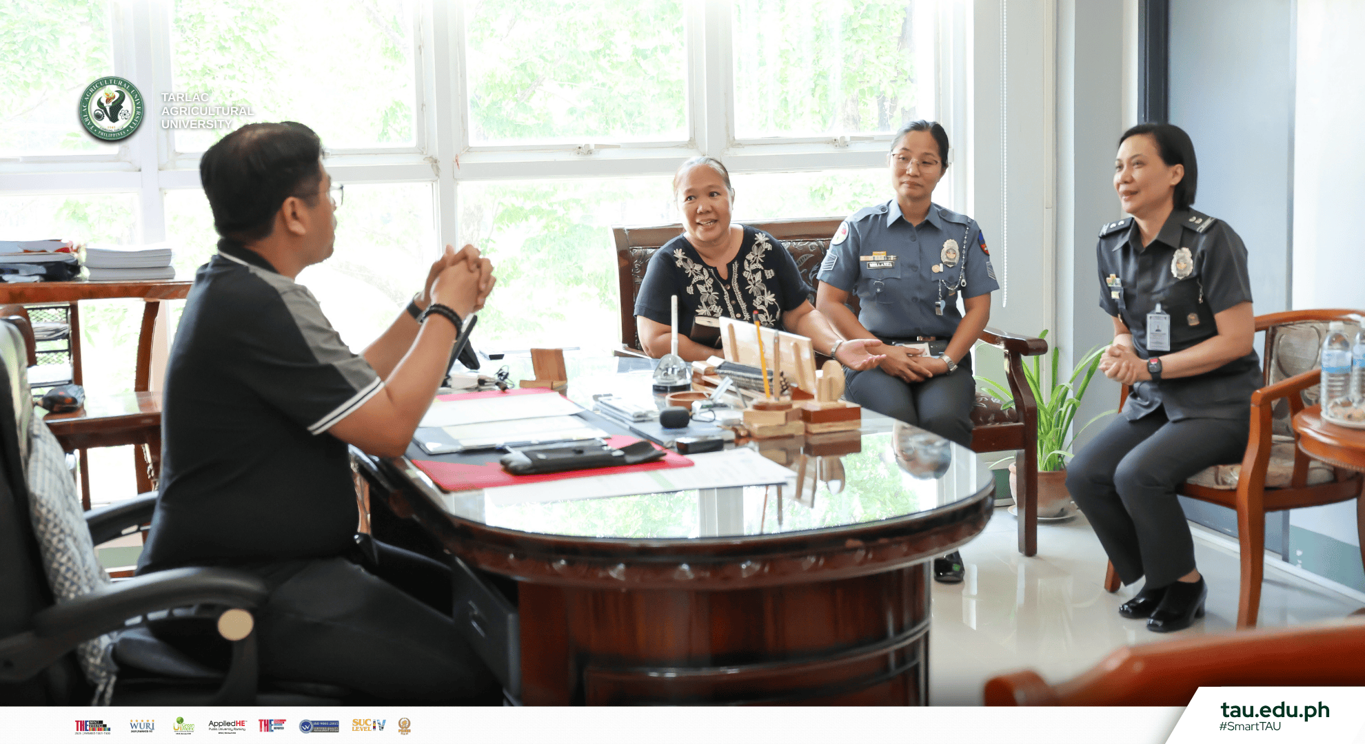 Demonstrating strong institutional synergy for inclusive education, the University President; Dr. Silverio Ramon DC. Salunson warmly receives the newly installed Municipal Jail Warden of Bureau of Jail Management and Penology (BJMP)โCamiling, Tarlac, JSINSP Jessica M. Corpuz, during a courtesy visit held at the Office of the University President this 15th of April 2026. The engagement highlights the continuing partnership between Tarlac Agricultural University (TAU) and BJMP in advancing education and development programs for persons deprived of liberty (PDLs).