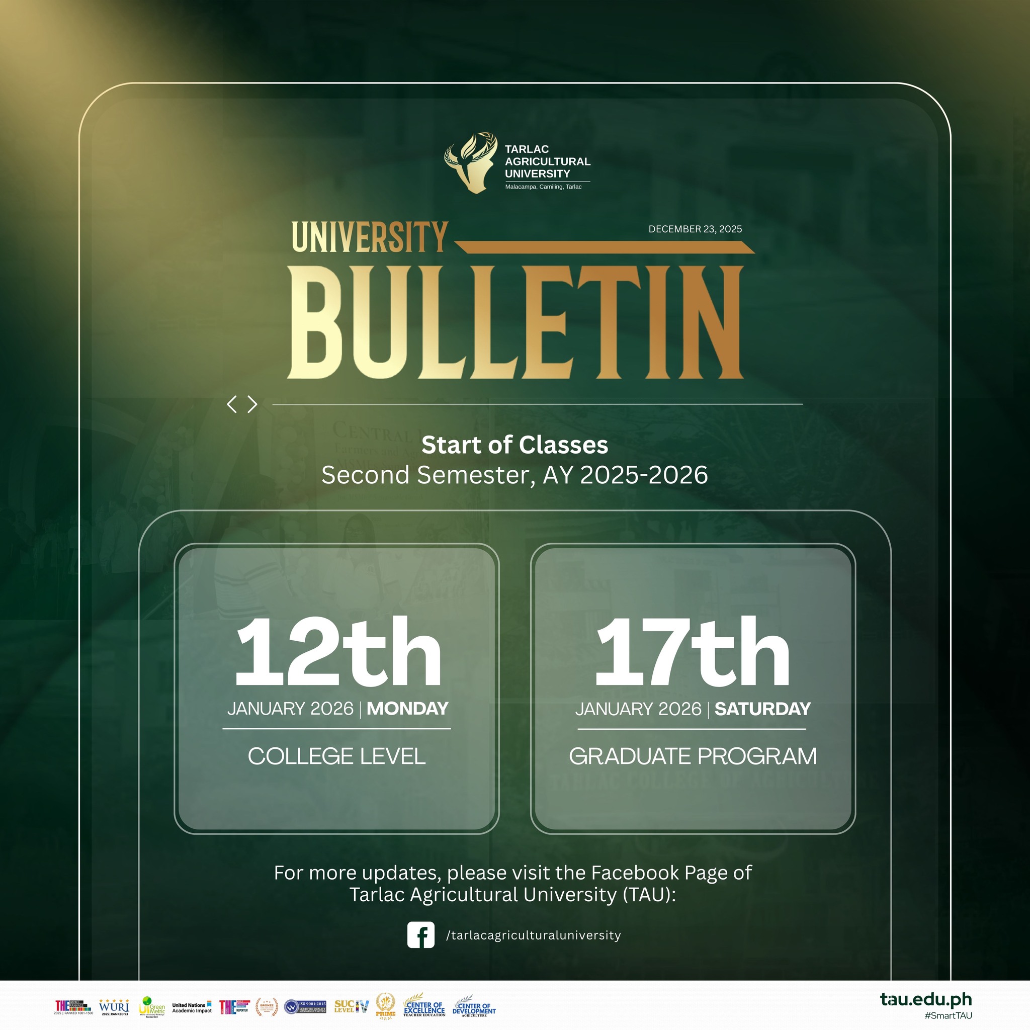 Heads up, TAU community! We are gearing up for the Second Semester of AY 2025β2026!Β