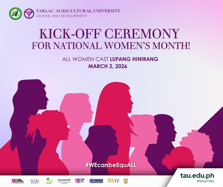 Anchored on the campaign βWE for Gender Equality and Inclusive Society,β Tarlac Agricultural Universityβs (TAU) observance underscores the goals of the Philippine Development Plan 2023β2028 and the countryβs ASEAN 2026 Chairmanship. It also complements the ASEAN Women Leadersβ Summit by advancing womenβs leadership and inclusive development across the region.
