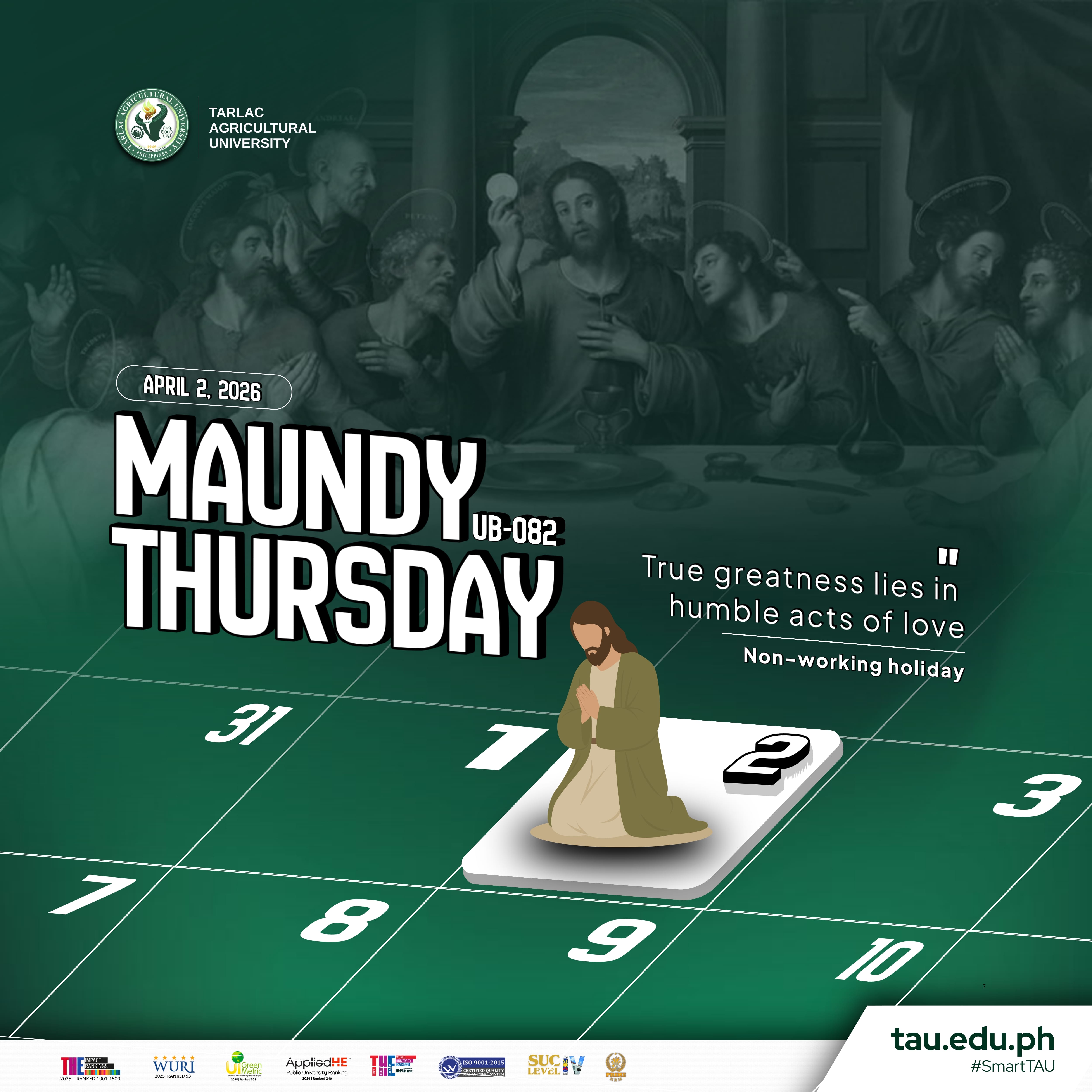 On this Maundy Thursday, we remember the Mandatum to love and serve one another. As we reflect as one Tarlac Agricultural University (TAU) community, we are reminded that true grace is found in humility. Amidst the rush of our daily lives, today calls us to return to the heart of our faith: service, sacrifice, and unconditional love.