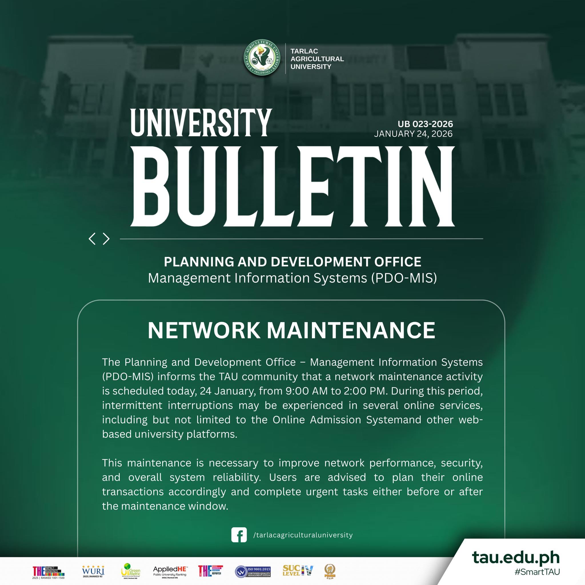 #TarlacAgriculturalUniversity #SmartTAU #GreenAndGlobal #SDG9 #SDG4
