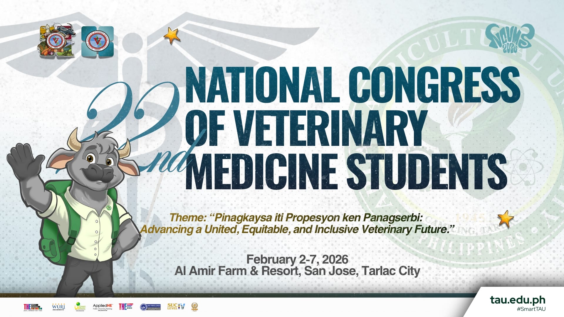 Tarlac Agricultural University (TAU) proudly takes the lead as the official host of the 2026 National Congress of Veterinary Medicine Students (NCVMS), the countryโs annual convergence of veterinary medicine students across the Philippines, happening February 2โ7, 2026.