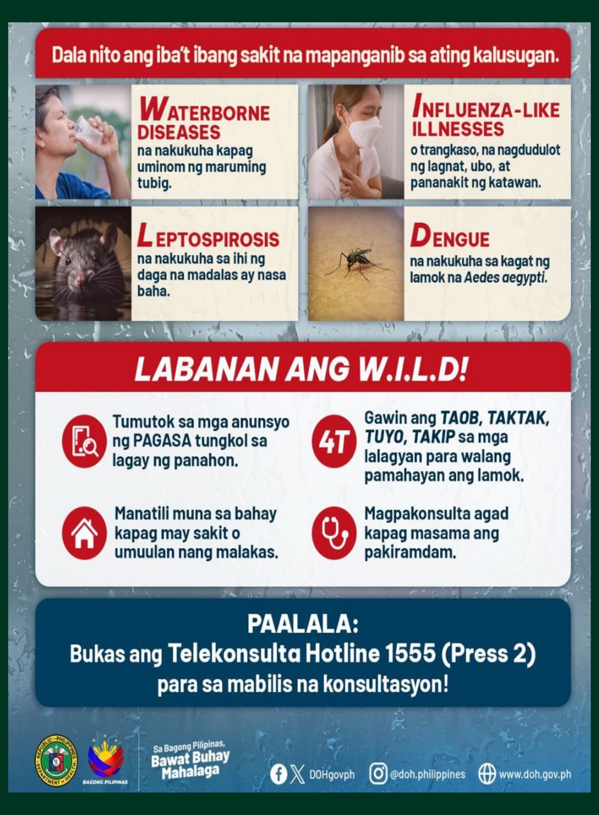 Labanan ang W.I.L.D (Waterborne diseases, Influenza-like illnesses, Leptospirosis, and Dengue)!