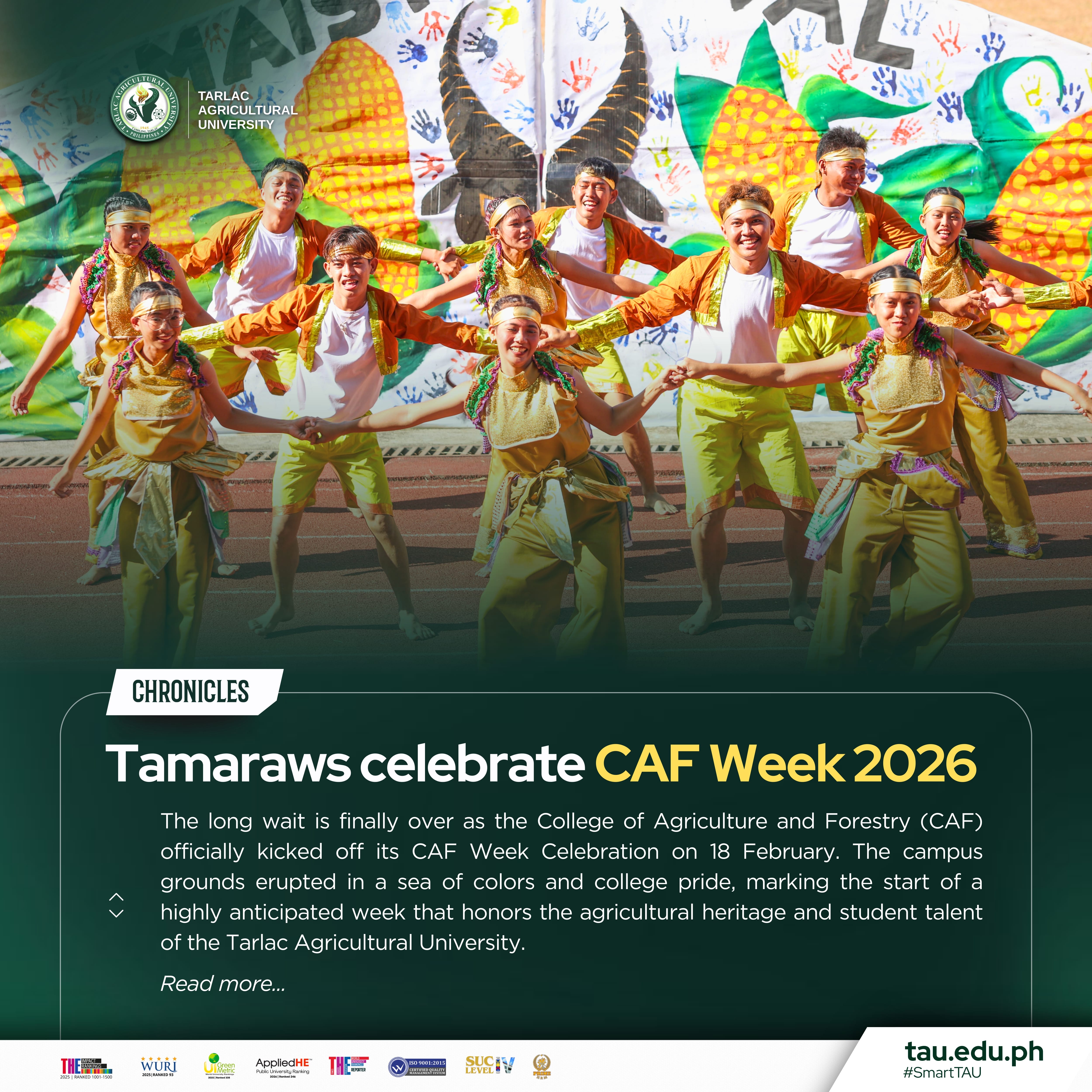 The long wait is finally over as the College of Agriculture and Forestry (CAF) officially kicked off its CAF Week Celebration on 18 February. The campus grounds erupted in a sea of colors and college pride, marking the start of a highly anticipated week that honors the agricultural heritage, talent, and skills of Tarlac Agricultural University (TAU) stakeholders.